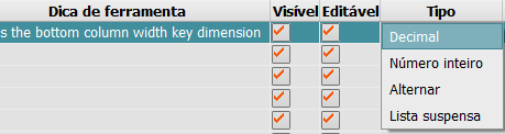 Tipo: clique duas vezes no valor Tipo para visualizar as opções disponíveis. O Tipo controla os valores permitidos que serão exibidos como atributos para a dimensão principal selecionada, na Pilha.
