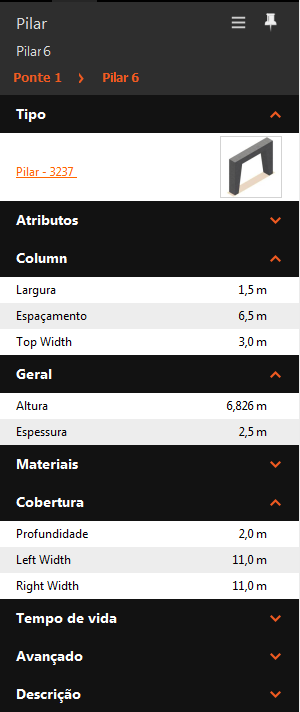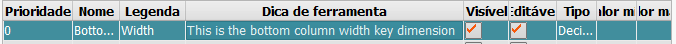 Legenda: O valor da legenda de uma cota principal representa o nome atribuído ao atributo correspondente na Pilha. Por exemplo, alterar “BottomColumnWidth” para “Largura” na coluna Legenda atualizaria “BottomColumnWidth” para exibir “Largura” na Pilha.