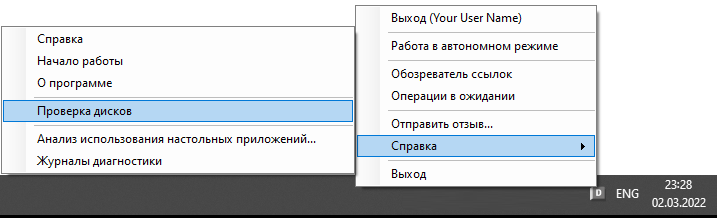 Щелкните правой кнопкой мыши значок области уведомлений Desktop Connector