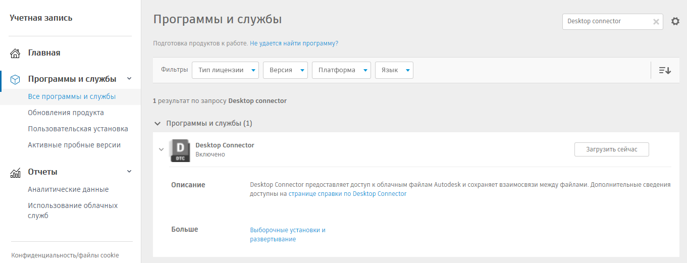 Доступна ли пользовательская установка для Desktop Connector в учетной записи на портале Autodesk Account?