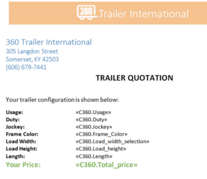 В Configurator 360 можно подготовить пользовательские документы на основе главных документов, созданных с помощью Microsoft Word. Специальные поля в главном документе будут заменены значениями или изображениями из модели Configurator 360. В результате будет создан загружаемый файл PDF, который могут просматривать пользователи. Он используется для ценовых предложений или других текстовых сообщений со связанными изображениями.