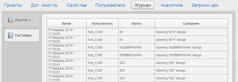 В журнале можно посмотреть список всех действий клиентов и возникших ошибок.