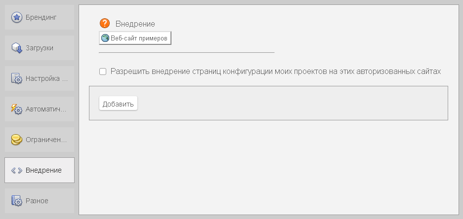 С помощью параметров во вложенных вкладках выполняется управление настройками в рамках учетной записи Configurator 360. Эти настройки влияют на все выгруженные проекты.