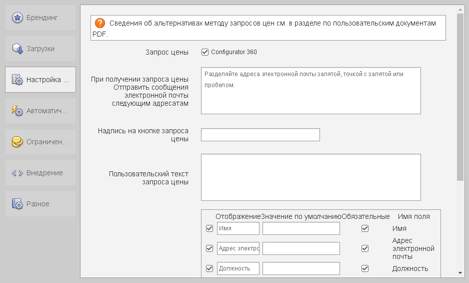 Настройка полей, отображаемых после нажатия клиентом кнопки запроса цены.