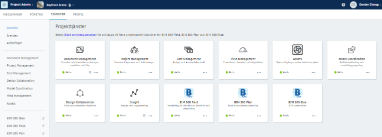 I listan Projekttjänster klickar du på Aktivera för den tjänst som du vill lägga till i projektet.