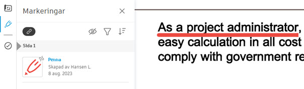 Genom att följa de här stegen kan du enkelt lägga till markeringar i dina Cost Management-dokument, vilket hjälper dig att samarbeta effektivare med ditt team och dina underleverantörer.
