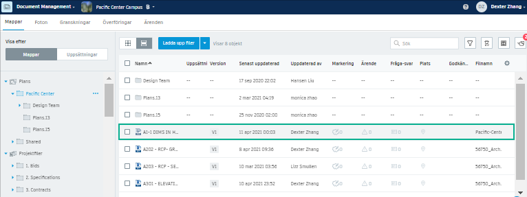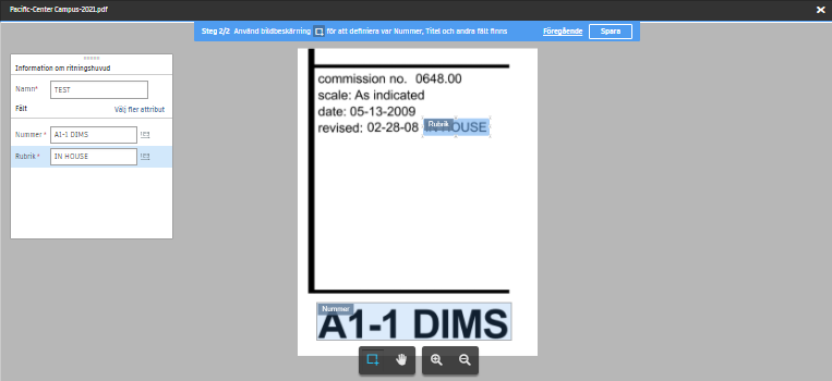 Efter att dokumenten publiceras så sparas extraherade data i systemet automatiskt och kopplas till varje ritblad, eller dokument.