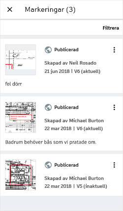 Visa alla markeringar associerade med ett 2D-dokument eller en 3D-modell: