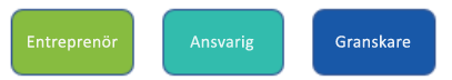 Följande bilder går igenom arbetsflödet för inlämningar. Klicka på ett steg gå till en sida med mer information om det steget. Färgerna i bilden indikerar roll/ansvar: