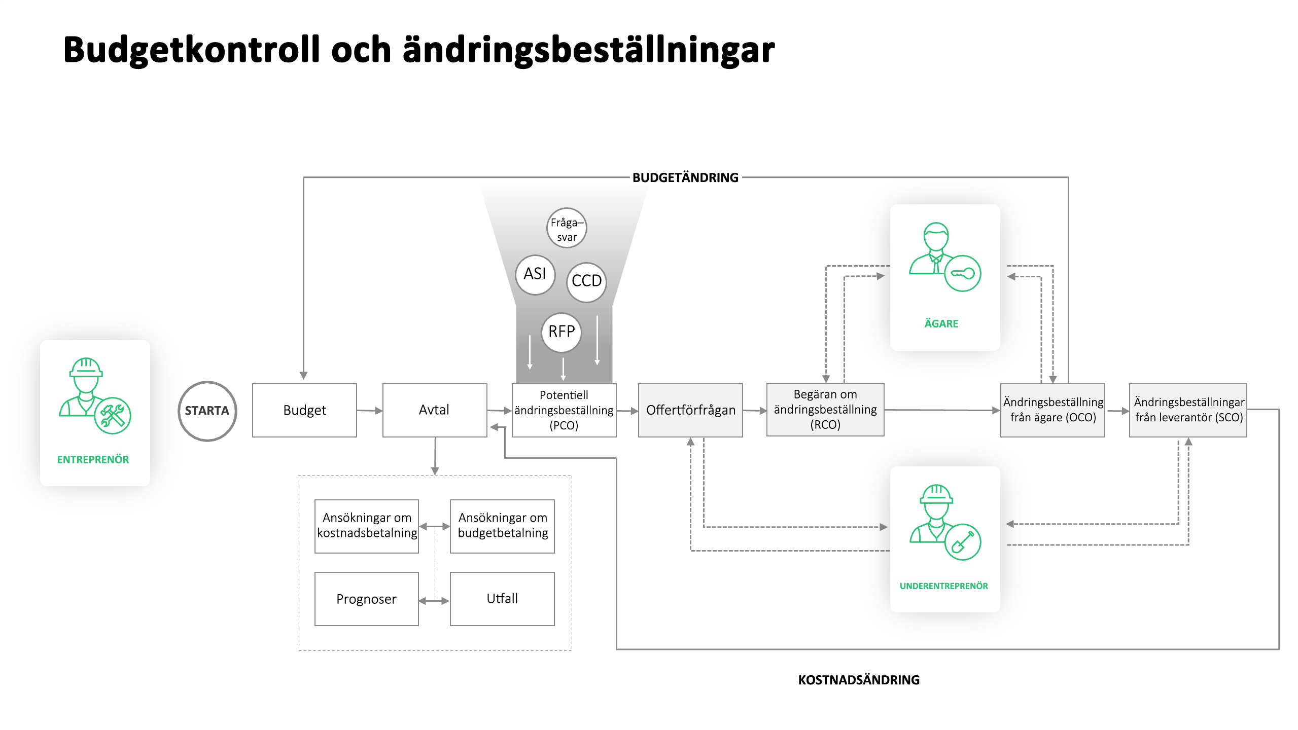 Bekanta dig med det grundläggande arbetsflödet för ändringsbeställningar som ingår i det finansiella Cost Management-arbetsflödet: