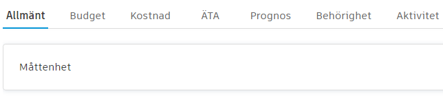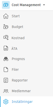 Använd flikarna i Cost Management för att ändra vilken grupp av inställningar du arbetar med: