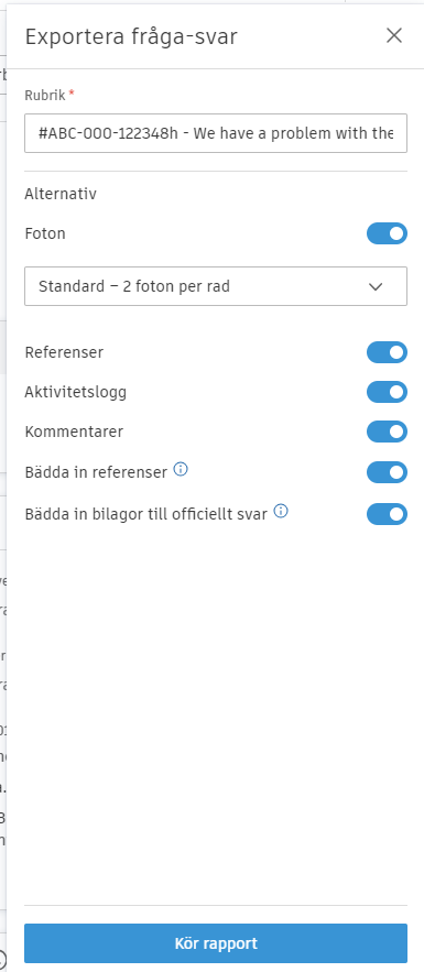 Klicka på Kör rapport för att skapa rapporten.