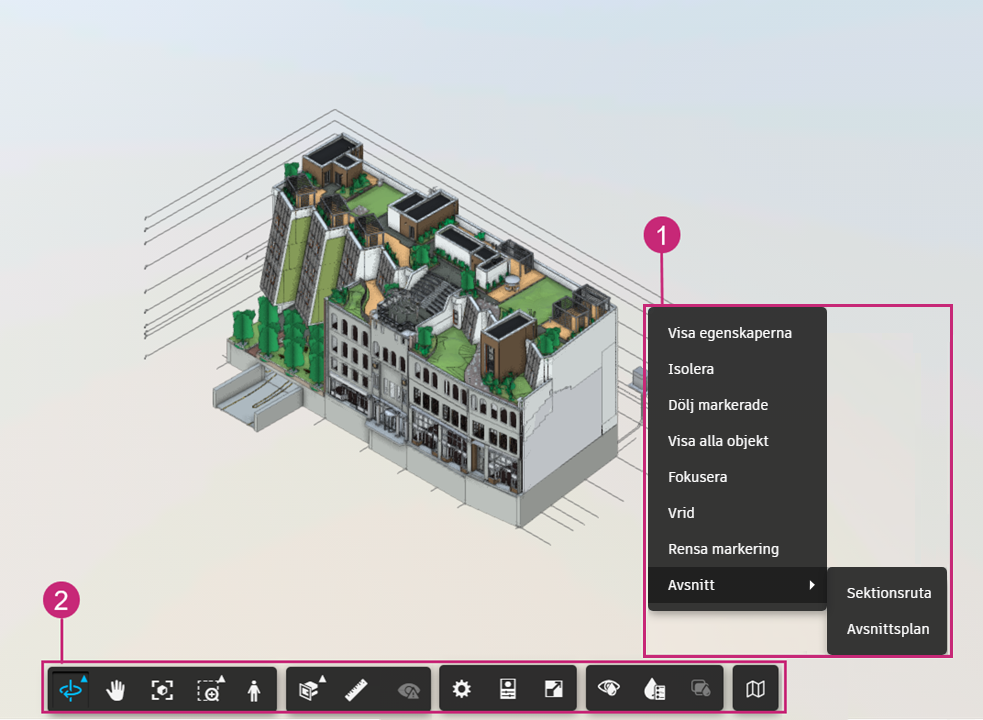 När du öppnar modeller i visningsfönstret så finns det flera olika visningsverktyg som du kan använda: