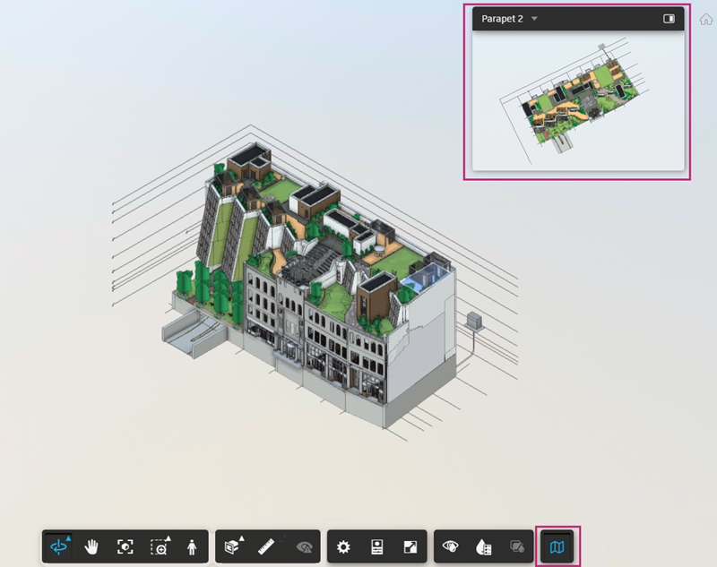 Du kan aktivera minikartan för alla 3D-modeller eller 3D-vyer som innehåller nivådata.