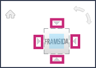 Den vänstra rullpilen roterar vyn 90 grader motsols, medan den högra rullpilen roterar vyn 90 grader medsols.