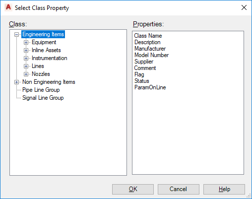Displays a list of properties, based on the class that is selected.