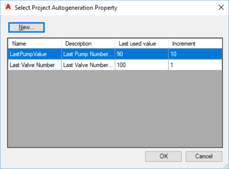 Displays the New Project Autogeneration Property dialog box.