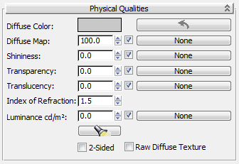 When you create a new Architectural material or edit an existing one, the settings on the Physical Qualities rollout are the ones you are most likely to need to adjust.