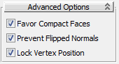 When on, ProOptimizer verifies that moving a vertex does not cause a face normal to flip. When off, ProOptimizer does not perform this test; the resulting mesh might appear to have holes when viewed with 1-sided viewport shading or rendered with a 1-sided material. Default=on.