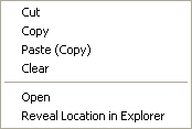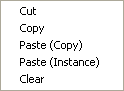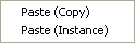 You see these menus only if copy and paste actions are appropriate. For example, if you copy a material and then right-click a map button, nothing happens.