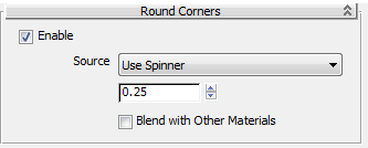 Many Autodesk Materials can create the illusion of rounded edges at render time. This feature is intended primarily to speed up modeling, so that you need not explicitly fillet or chamfer edges of an object such as a tabletop.