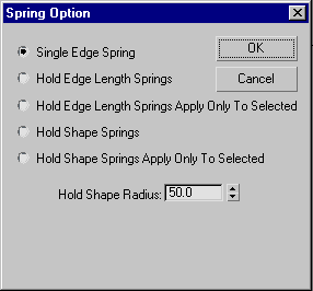 Use the Spring Option dialog to determine how springs are added in the Flex modifier when you click the Advanced Springs rollout Add Spring button.