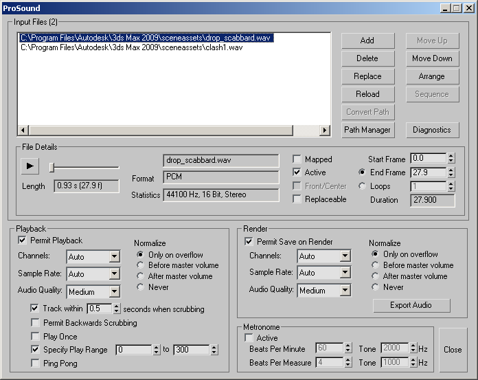 - The sample rate to use when previewing audio output in 3ds Max. If set to Auto, ProSound examines the source files and determines the best setting.