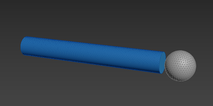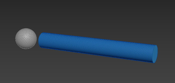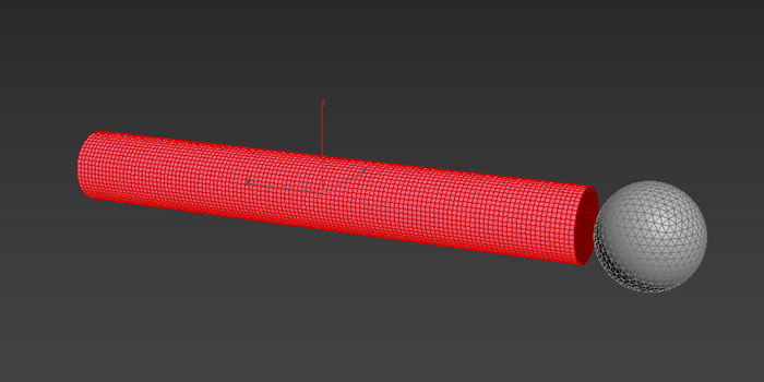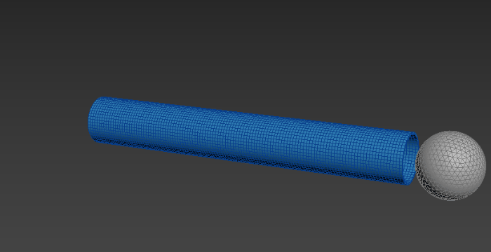 In this example, a geosphere acts as the target object, travelling through the cylinder.