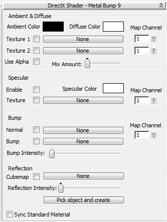 On the DirectX Shader - Metal Bump 9 rollout, all texture maps have the same general controls.