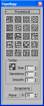 Creates a Plane object and converts it to editable poly format for quick testing of the different tools. The value of the "S" parameter determines the number of segments in the plane.