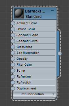 Dropping the wire on the Diffuse Color input socket applies that map to the material’s diffuse color component.