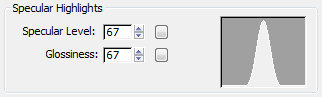This curve shows the effect of adjusting the values of Specular Level and Glossiness. As you decrease Glossiness, the curve grows wider; as you increase Specular Level, the curve grows taller.