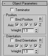 You use the Terminator option in the Object Parameters rollout to stop calculation of the kinematic chain before it reaches the root object of the hierarchy. A terminator object stops calculation at the terminator's child object; the terminator itself is not affected by the IK solution. This gives you very precise control over the behavior of the kinematic chain.