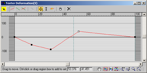 A deformation curve starts as a straight line using a constant value. To produce more elaborate curves, you insert control points and change their properties.