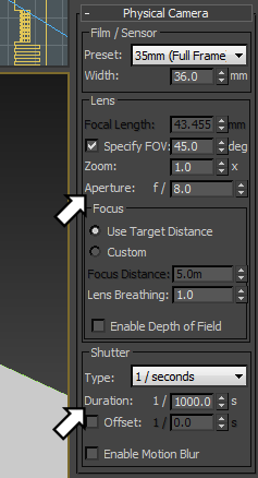 As you develop your scenes in 3ds Max, you will need to experiment with various exposure settings to obtain the right lighting conditions. Some of these settings depend on speed and aperture; in particular, the Physical Camera models physical exposure controls.