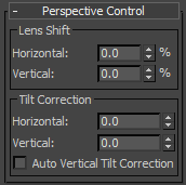 These settings tilt the camera horizontally or vertically. You can use them to correct the perspective, particularly in scenes where the camera is already tilting up or down.