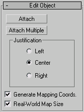 Controls the scaling method used for texture mapped materials that are applied to the object. The scaling values are controlled by the Use Real-World Scale settings found in the applied material's Coordinates rollout. Default=off.