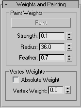 The Paint Weights controls let you use a spherical brush with adjustable radius and falloff to change vertex weights in the viewports, thus controlling the amount of lag. The Vertex Weights controls let you apply absolute or relative weighting to single vertices or groups of vertices.
