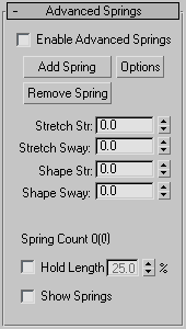 The four numeric Stretch and Sway settings in this rollout are available only when Enable Advanced Springs is on.