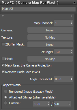 - Mask Uses the Camera Projection When on, the mask uses the same camera projection as the Texture and ZBuffer Mask. When off, it uses the object's UVW coordinates. Default=on.