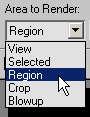 The Area To Render list on the Rendered Frame Window lets you specify the portion of the scene that will be rendered.