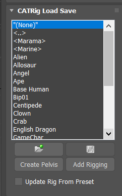It also holds the Rig Preset Manager, which allows you to load and save CATRig presets.