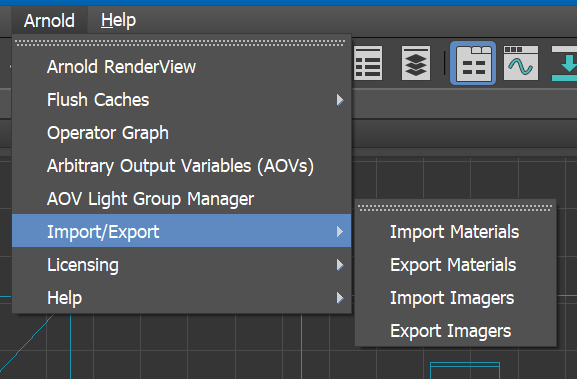 Imager setups can be exported and imported: A set of imagers can be exported to and imported from arnold files (.ass, usd), for exchange between scenes or to use as presets. (MAXTOA-1647)