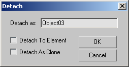 By default, both Detach To Element and Detach As Clone are off. Thus, when you detach a sub-object selection, it's removed from the original object and becomes a new object. The dialog options let you keep the detached item as an element of the original object and/or detach it as a copy of the original selection.