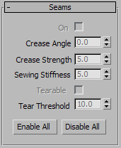 - Tear Threshold Sets a threshold value for tearing the seam. This value is equivalent to the Strength value of a Weld constraint at the Group sub-object level. Default=10.0.