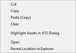 Opens the Asset Tracking dialog with the bitmap highlighted.