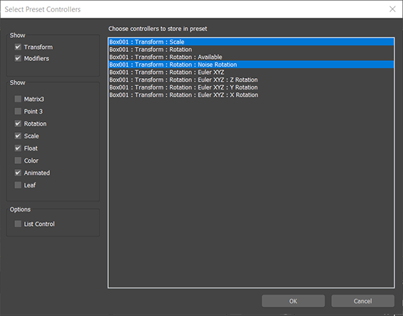 to open the Select Preset Controllers dialog. For this example, a box with a noise controller is used.