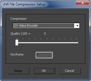 Note: When using the 64-bit version of 3ds Max, the default compressor is DV Video Encoder. The only output resolution this encoder supports is 720 x 480. To use another output resolution, set Compressor to a different option. - Compression Quality