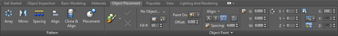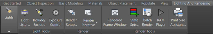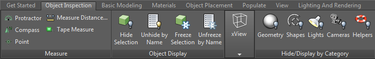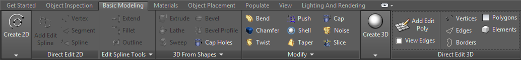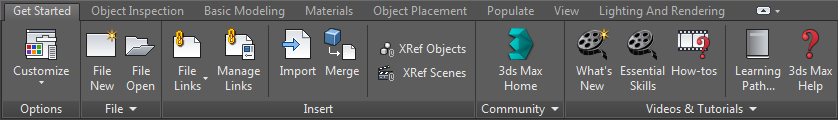 The Design Workspace is organized to be especially useful for people who are new to using 3ds Max. The main focus of the workspace is the ribbon, found below the main toolbar.