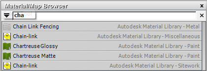 Important: By default, the Material/Map Browser displays only materials and maps that are compatible with the active renderer.